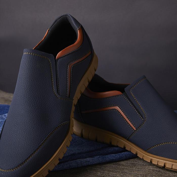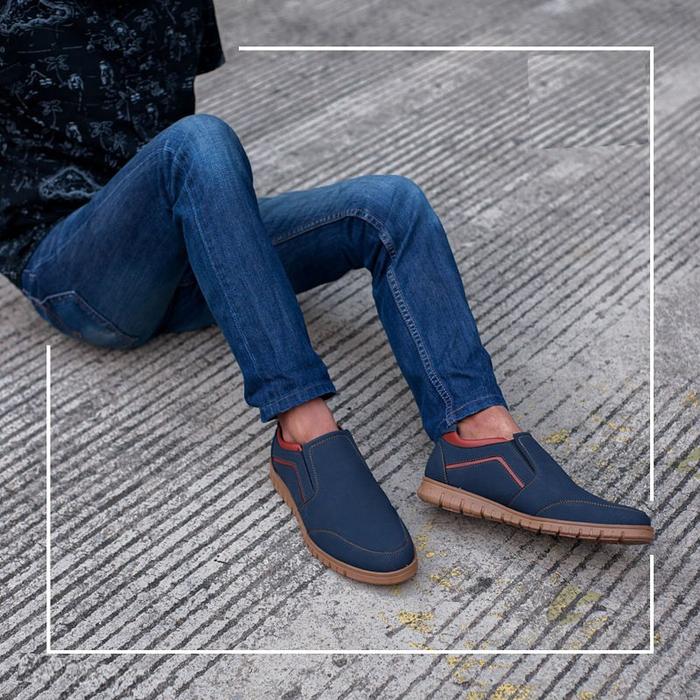 PAULMAY - Sepatu Slip on Pria Modena 01 Navy - Biru Karet Flat Shoes Kasual Hitam Kerja