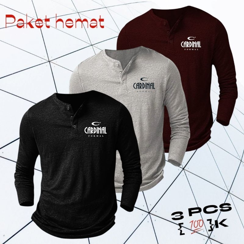 Paket Hemat 3 Pcs Kaos Kancing Pria Lengan Panjang /Kaos LOGO CR /kaos Distro /Kaos