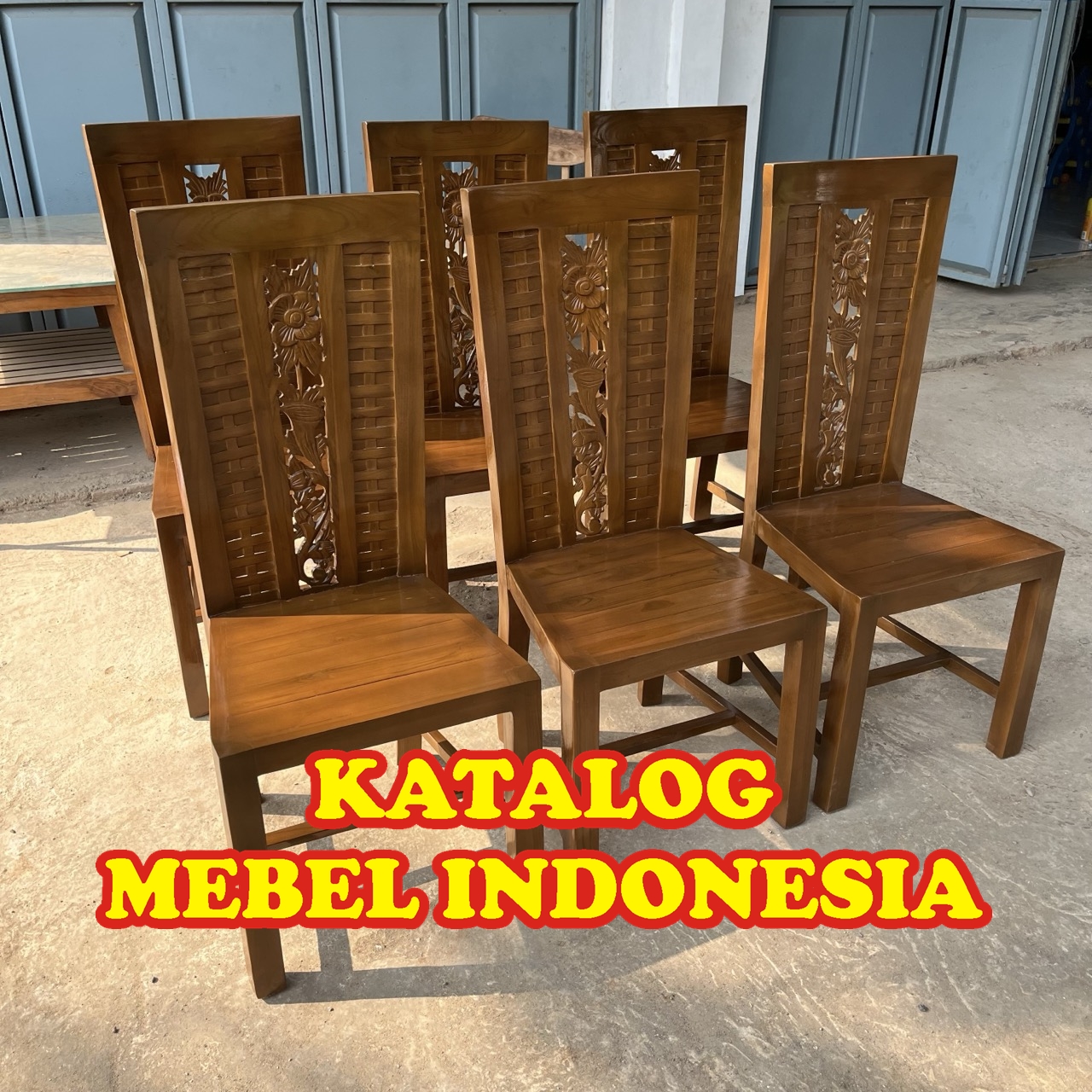 Kursi Makan Jati Motif Ukir dan Anyaman - Furniture - Chairs