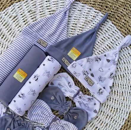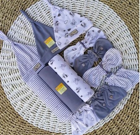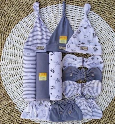 Paket Hemat 12 Pcs Bedong Set Topi Sarung Tangan Kaki Bayi Baru Lahir Newborn Seri Abu