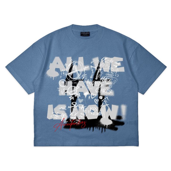 AccentAmbios Kaos Boxy Oversized All We Have is Now Steel Blue Pria dan Wanita - Cotton Combed 20s