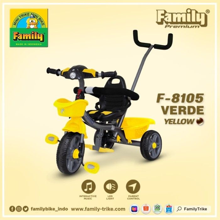 Sepeda Anak Bayi Stroller Roda 3 Family Verde F 8105 Musik Murah BDG