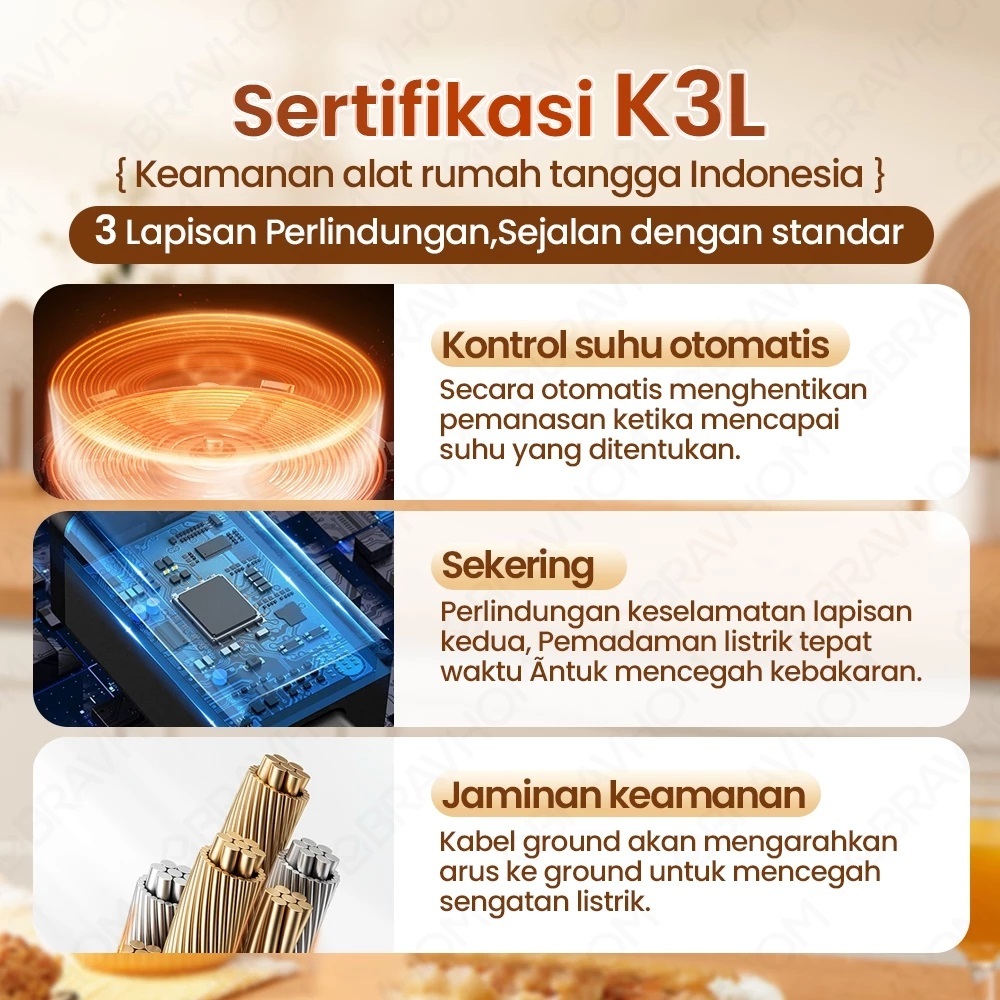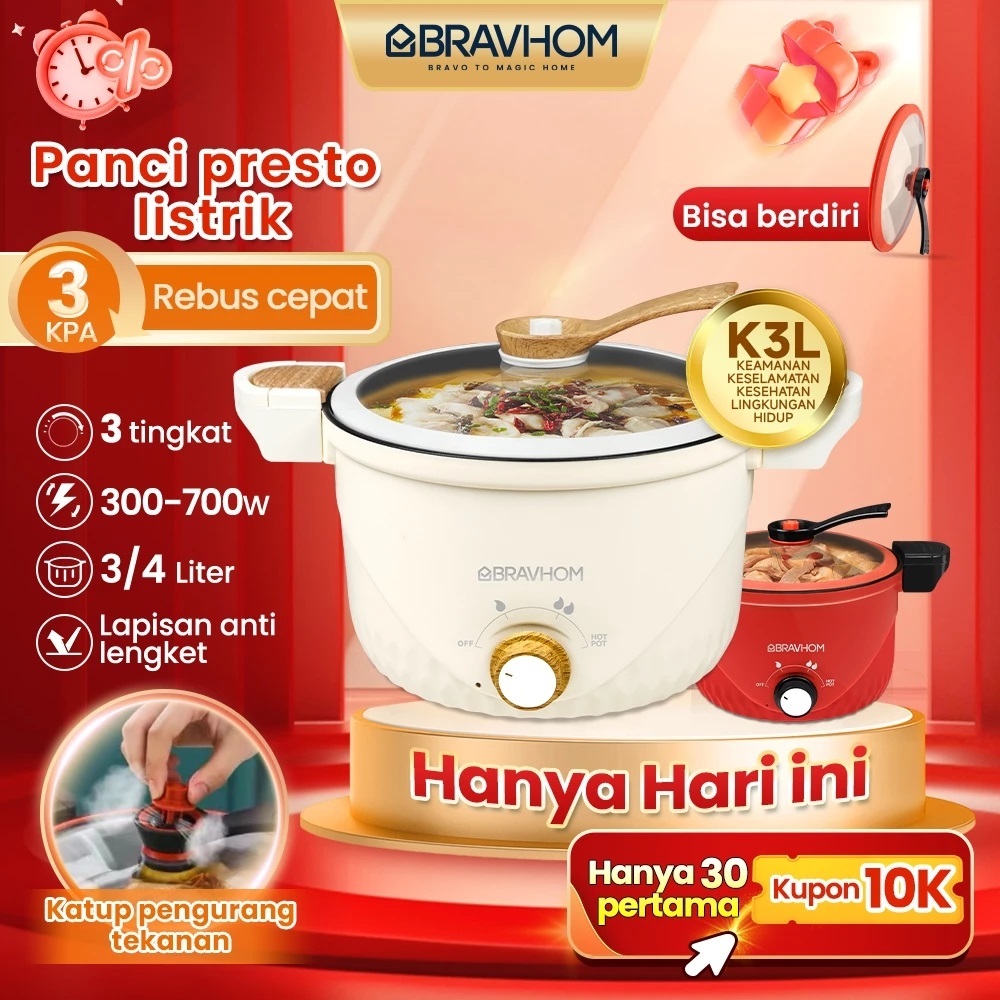 BRAVHOM Panci Listrik Serbaguna 700W Panci Presto Listrik 4 Liter 3kPa Anti Lengket 3 Speeds BL-EP11
