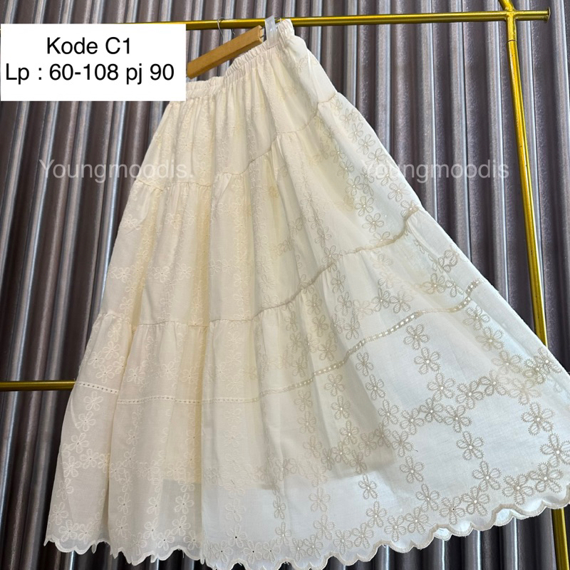 YOUNGMOODIS MAXI SKIRT ROK PANJANG KATUN BORDIR KATBOL LACE