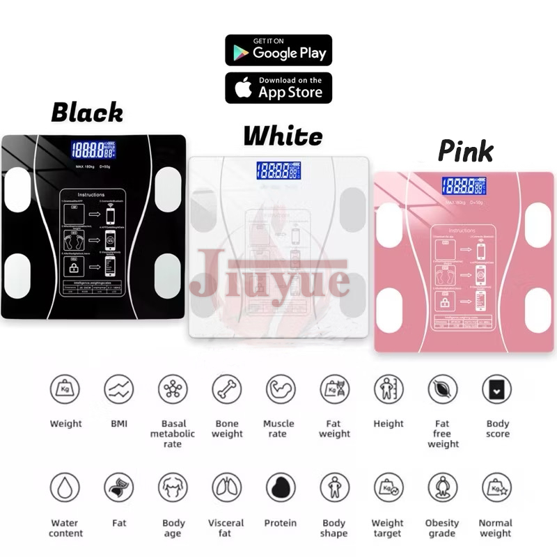 Timbangan Badan Digital Bluetooth Tempered Glass Timbangan Lemak Tubuh Cerdas 180KG USB