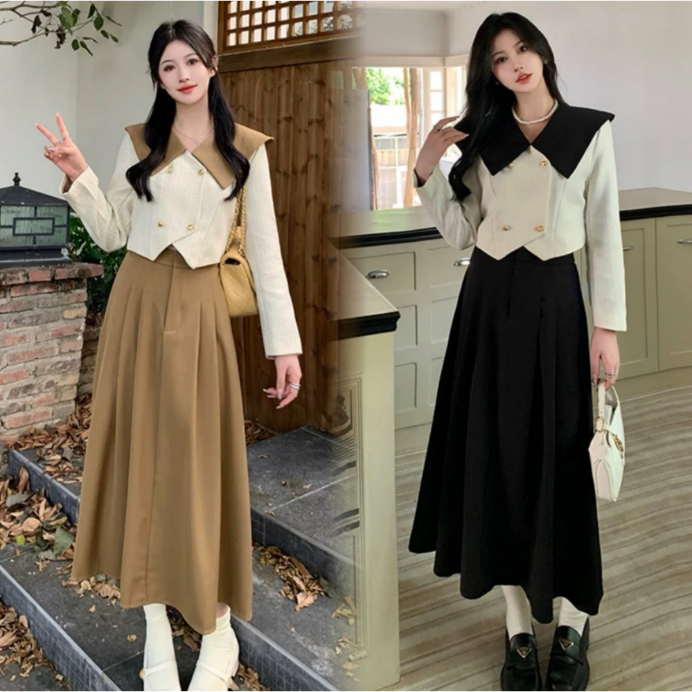 Dres Set Wanita Elastic Franch M356 Atasan + Rok Estetik Terbaru Kekinian Best Seller
