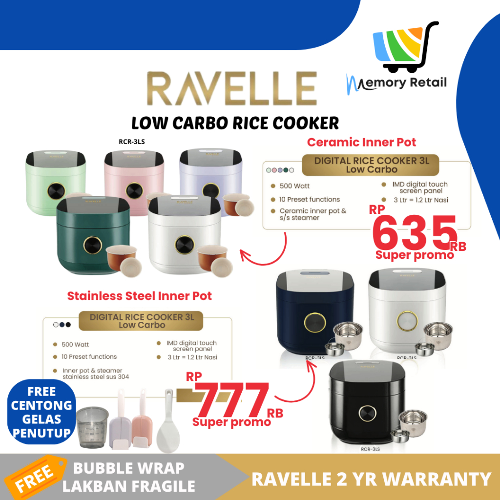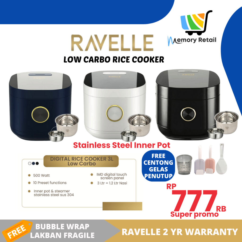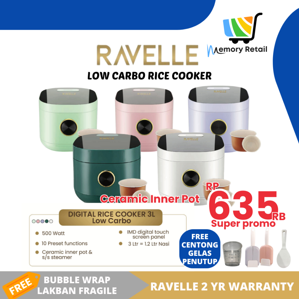 RAVELLE Rice Cooker Low Carbo Mewah Elegan Low Watt Penanak Nasi Magicom