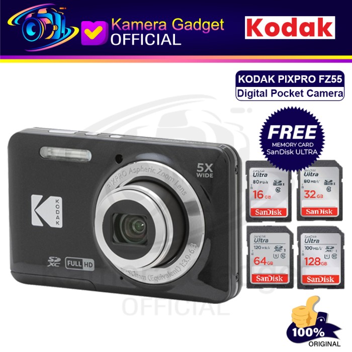 Kodak Pixpro Fz55 Digital Camera / Kamera Pocket Fz 55 - Hitam, Paket Standar