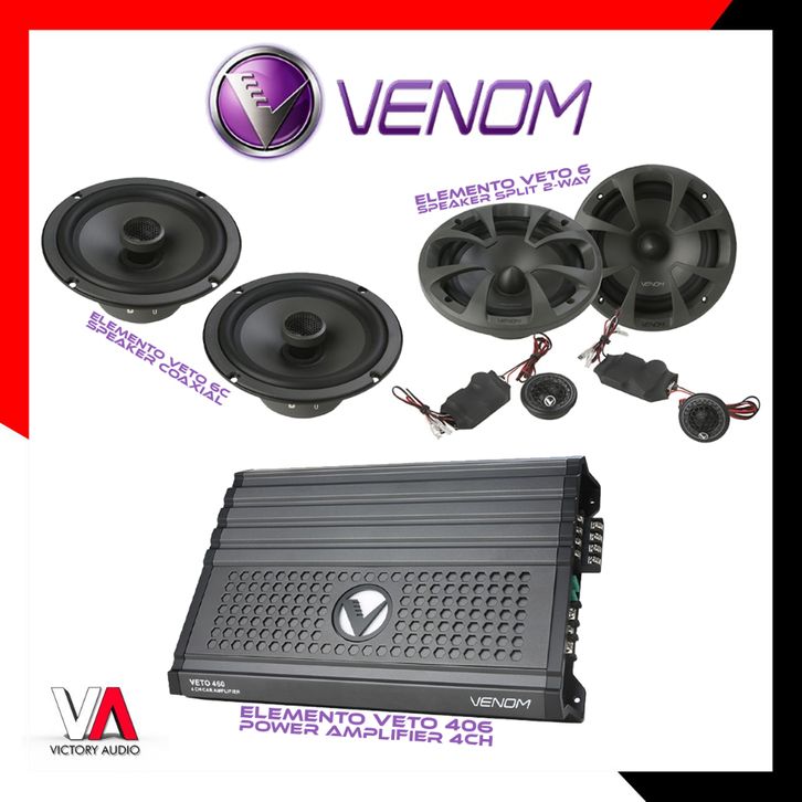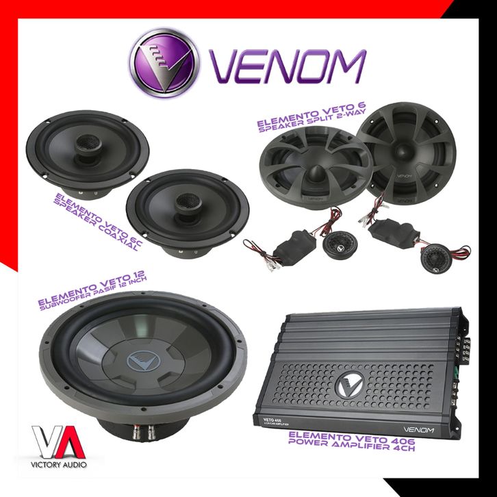 Paket Audio Mobil Full Set Sound System VENOM ELEMENTO VETO SERIES Speaker Split 2-Way ELEMENTO VETO 6 + Speaker Coaxial
