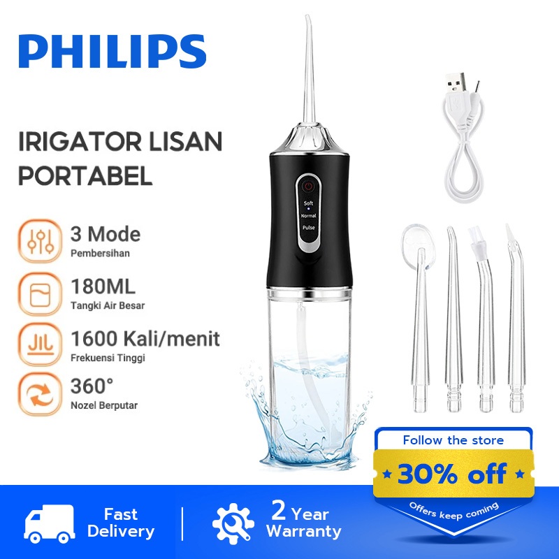 Philips Water Floss Electric Pembersih Karang Gigi Oral Lrrigator Pembersih Gigi Penyesuaian USB Rechargeableeaner Portable