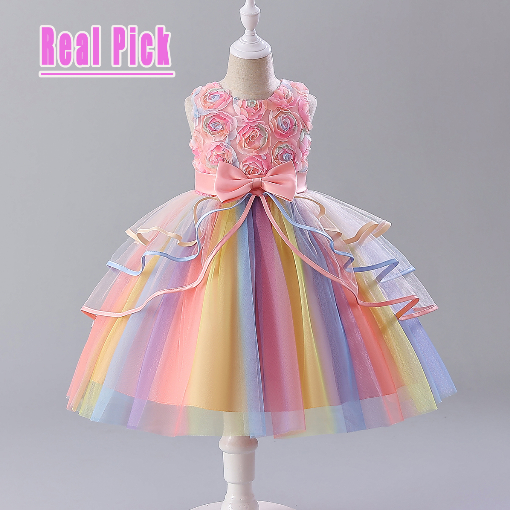 3-9Thn Kontes Kecantikan Princess Dress Pesta Anak Perempuan Wedding Floral Gaun Pesta Ulang Tahun