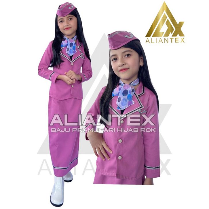Baju Profesi Karnaval Agustusan Pramugari Hijab Rok Taro Anak