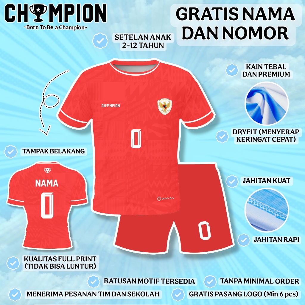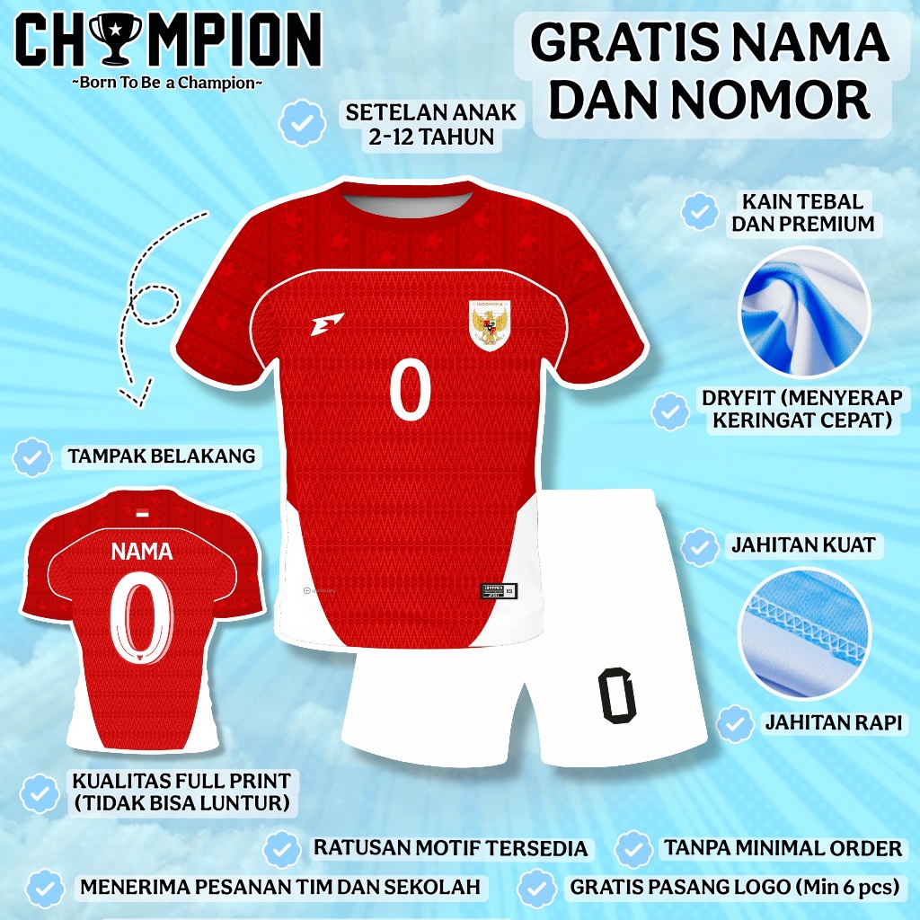 (SPESIAL DISKON) (GRATIS NAMA NOMOR) Setelan Baju Bola Anak / Setelan Baju Futsal Anak / Setelan Badminton Anak