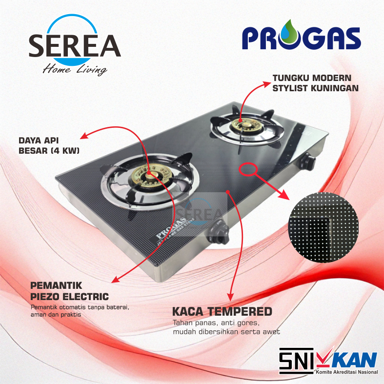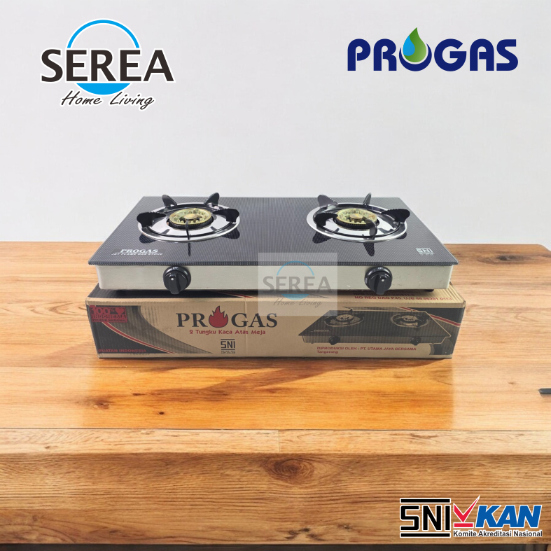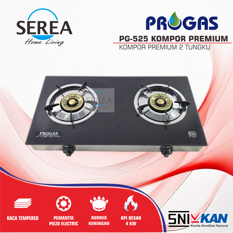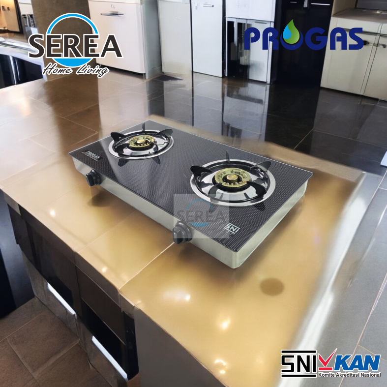 Kompor Gas 2 Tungku Progas PG-525 Premium Kaca Meja Api Besar Biru Desain Mewah Modern SNI