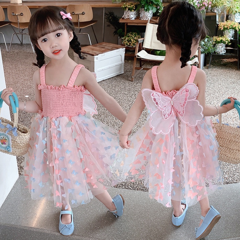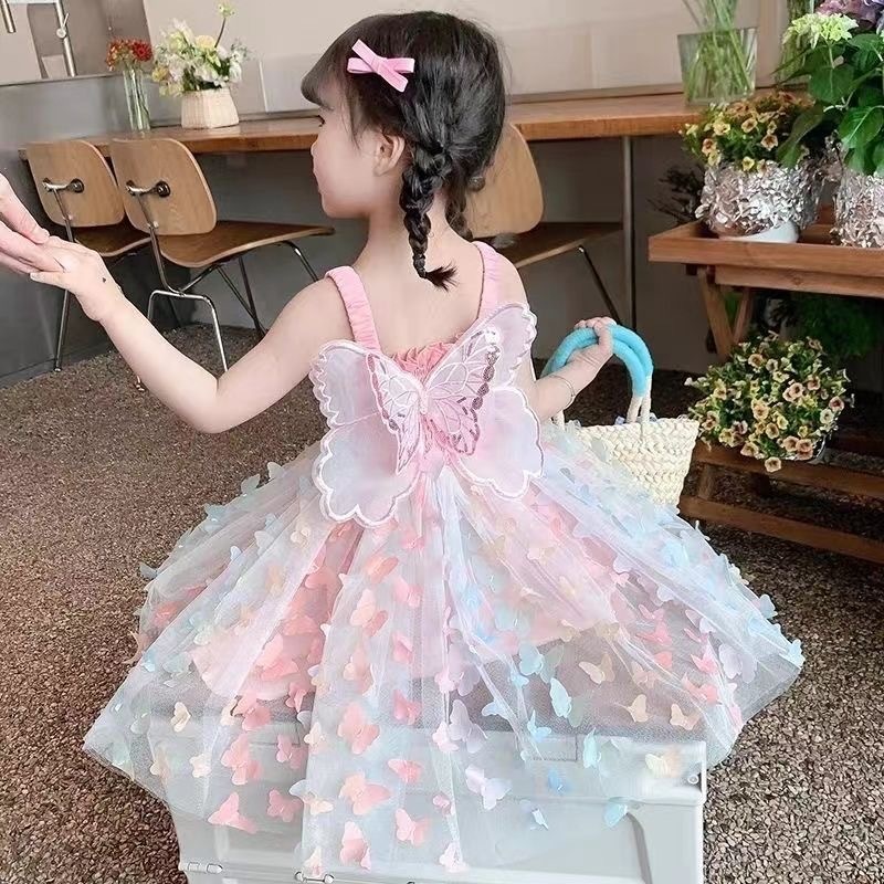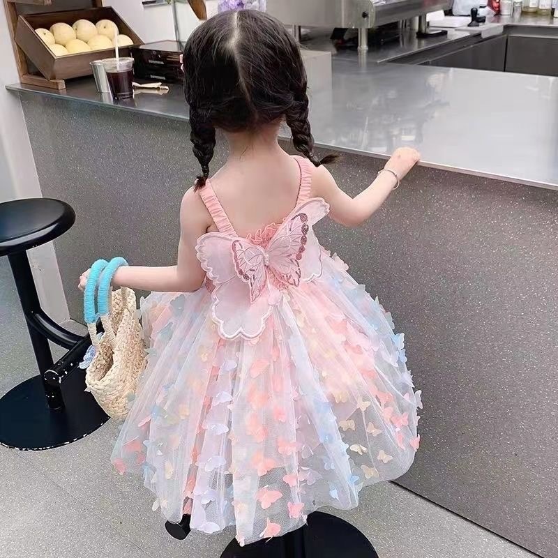 Haasya Kids 1-6 Tahun Gaun Gadis Baru Modis Kepribadian Trendi Harta Wanita Gaun Peri Kupu-kupu Kasual Korea