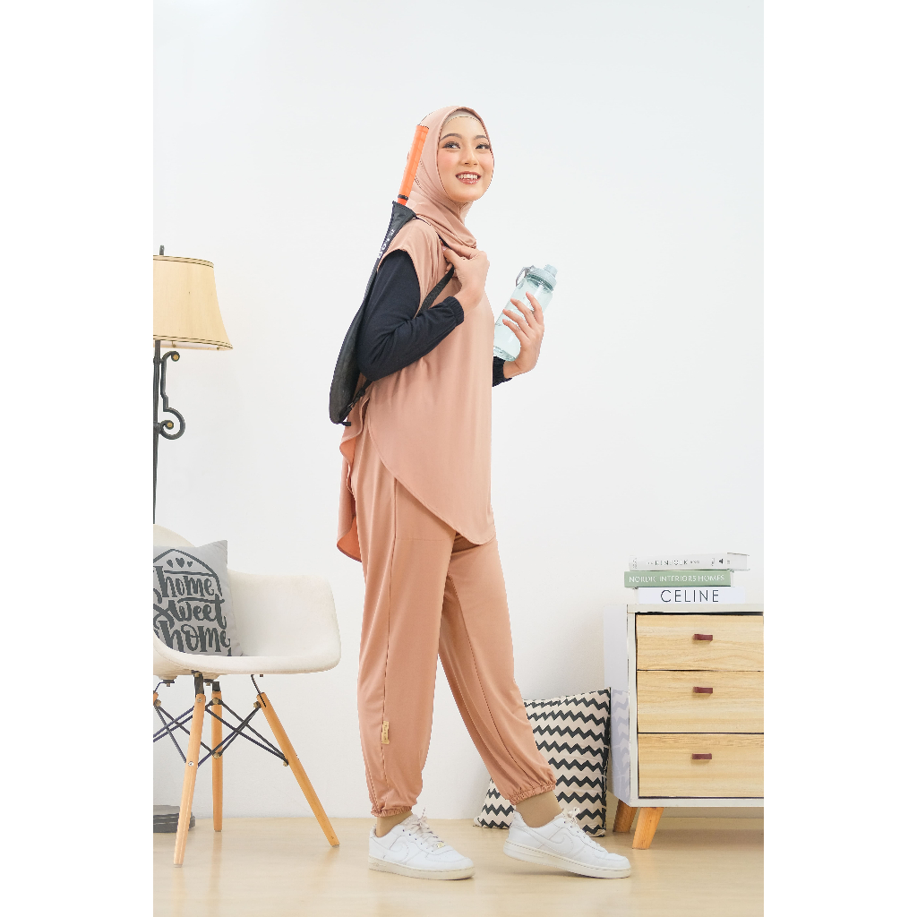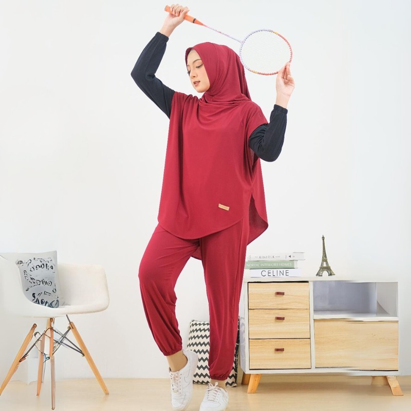 HELAIRINDU - Setelan Hijab Olahraga Wanita Outer Hijab dan Celana Bahan Royal Jersey