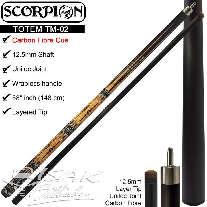 STICK BILLIARD SCORPION TOTEM TM-02 CARBON FIBRE UNILOC LOW DEFLECTION STICK BILLIARD FREE ONGKIR