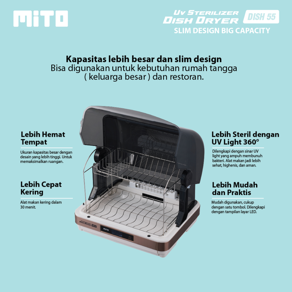 MITO UV STERILIZER & DISH DRYER 55 LITER ALAT STERIL PERALATAN MAKAN – DISH55