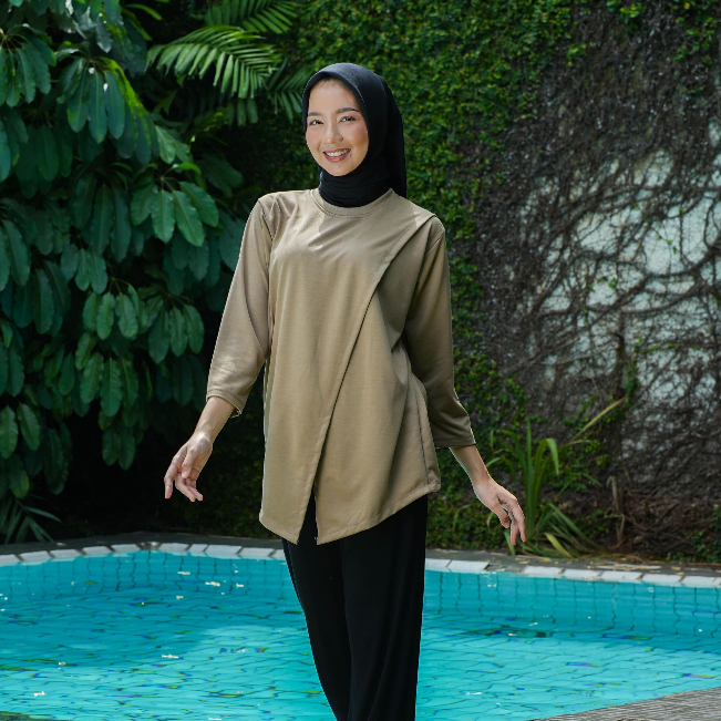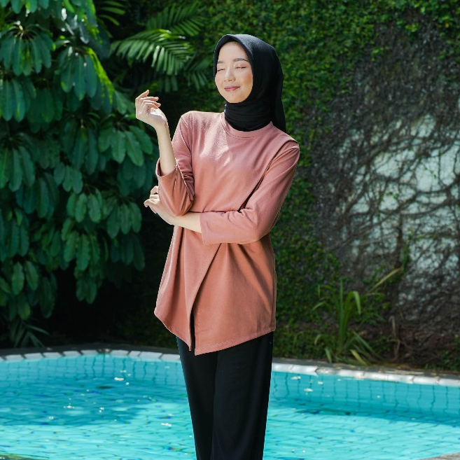 DAISY STUFF Kaos Polos Oversized Top slit Depan Hijab Lengan 7/8 Friendly Busui