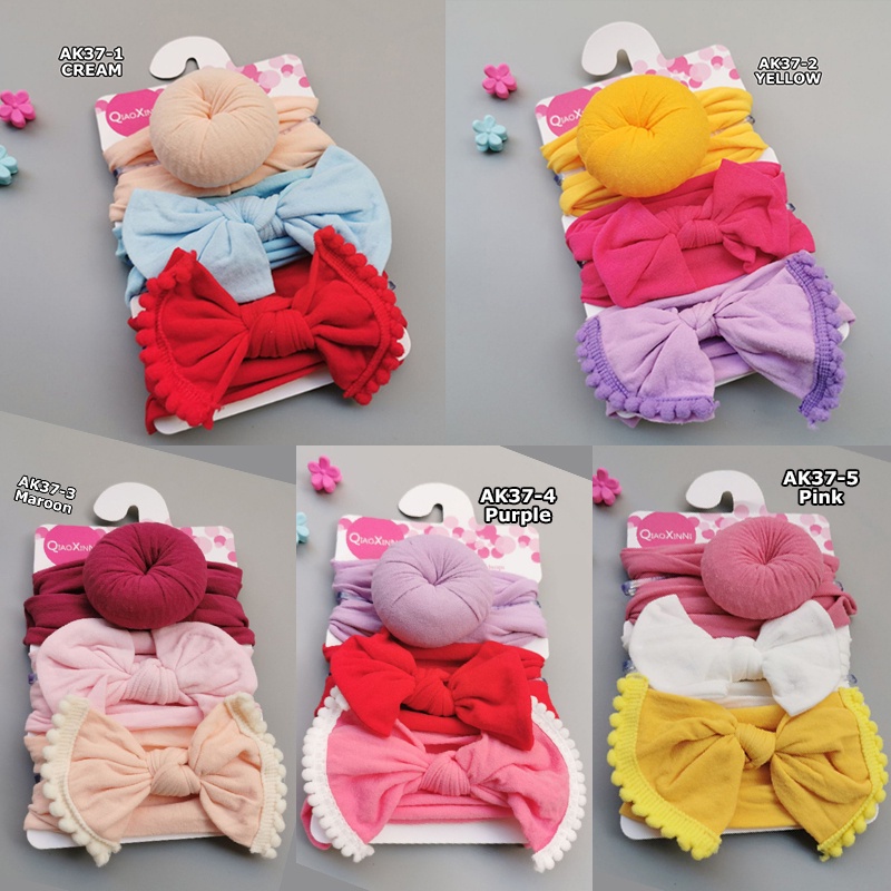 BANDANA BAYI KOREA ANAK PEREMPUAN MOTIF BULAT PITA 3in1 HEADBAND BANDO FASHION IMUT AK37