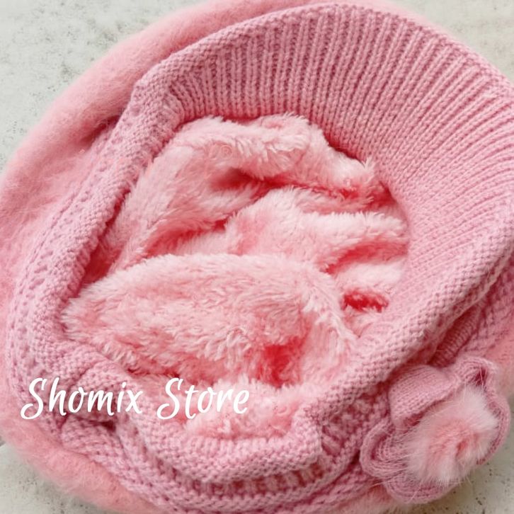 TERLARIS AMANDA FLEECE TOPI BARET RAJUT DEWASA KNITTED HAT CASUAL FASHION KOREA WANITA BAHAN BERBULU