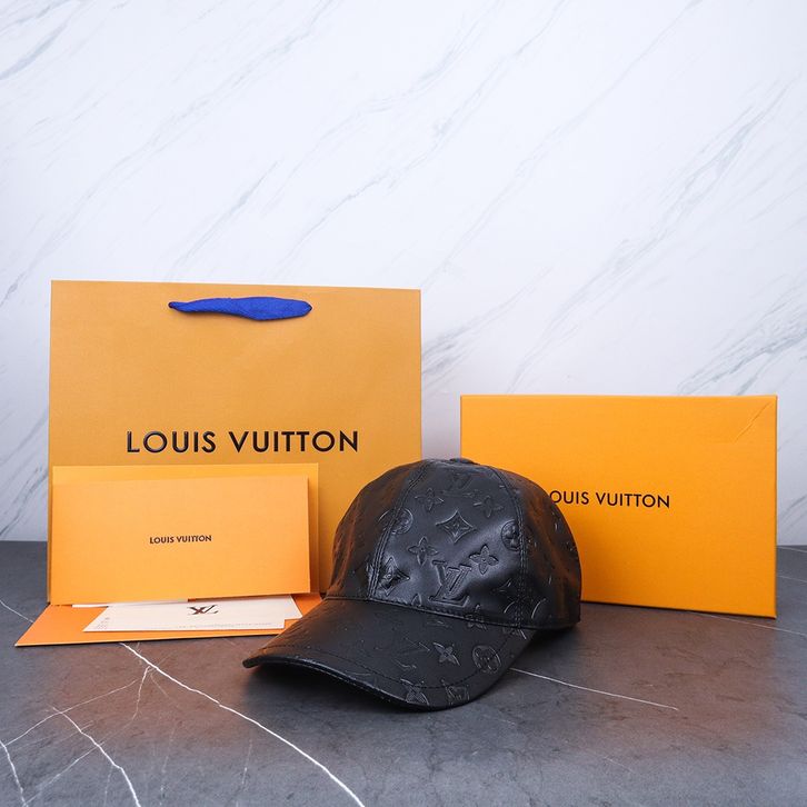 TERLARIS TOPI L BASEBALL CAP MONOGRAM SHADOW LEATHER BLACK CAP