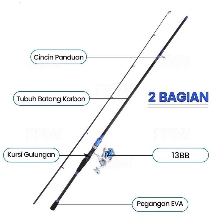 Joran Getsu Wisin Joran Pancing 1.65m/1.8m/2.1m Fishing Rod Carbon Fiber Joran Pancing Spinning Fishing Pole 2 Section