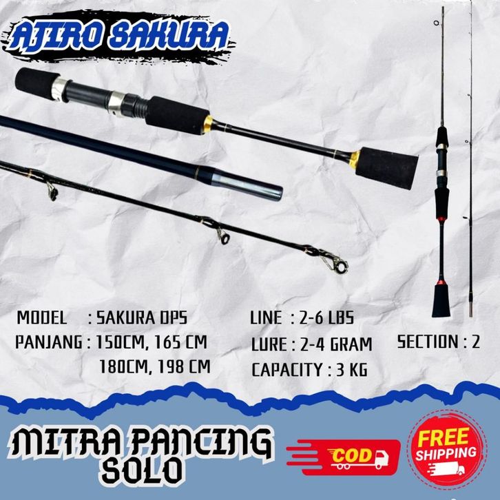 Joran Getsu Joran UL Ultralight Fiber Solid Lentur AJIRO SAKURA Ukuran 150 165 180 198 Drag 5 Kg