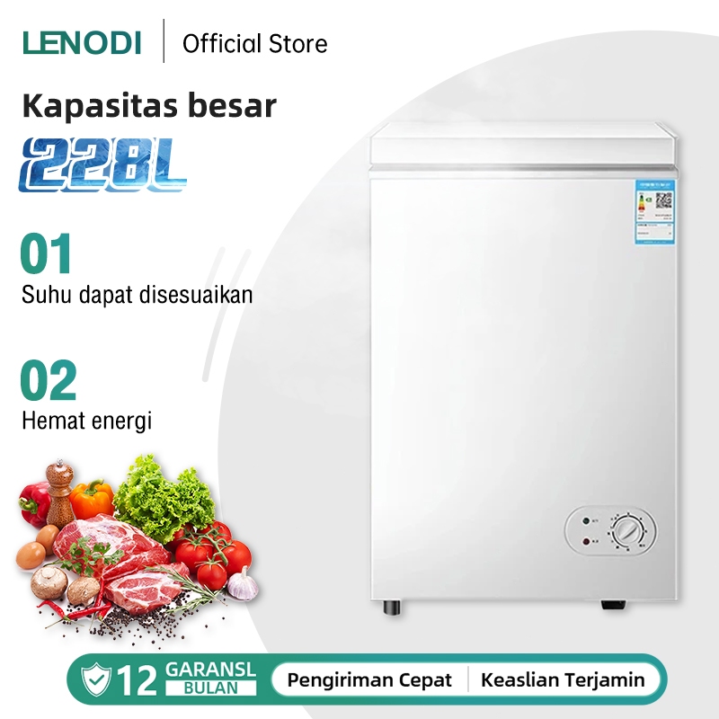 (BIG SALE) - Freezer Box Lenodi Freezer Vertikal Freezer 198/128 Liter Berpendingin Penuh Dan Beku
