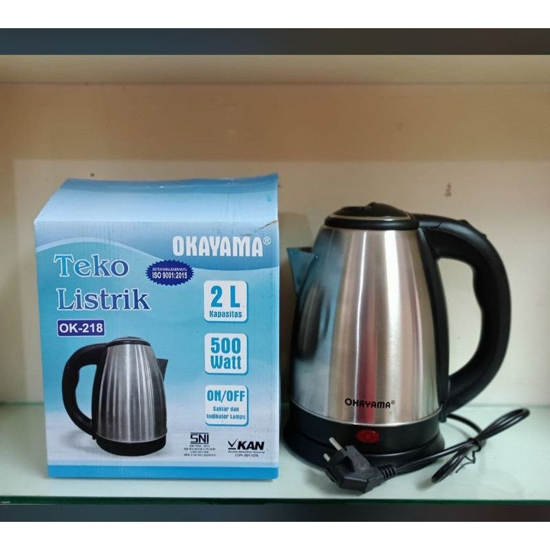 Teko Listrik Okayama 2 Liter Electric Kettle 2 Liter OK-218 tekolistrik Peralatan Rumah Stainless