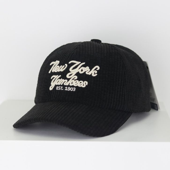 TERLARIS TOPI MAJOR LEAGUE BASEBALL NY PREMIUM HITAM BLACK WHITE CORDUROY FONT