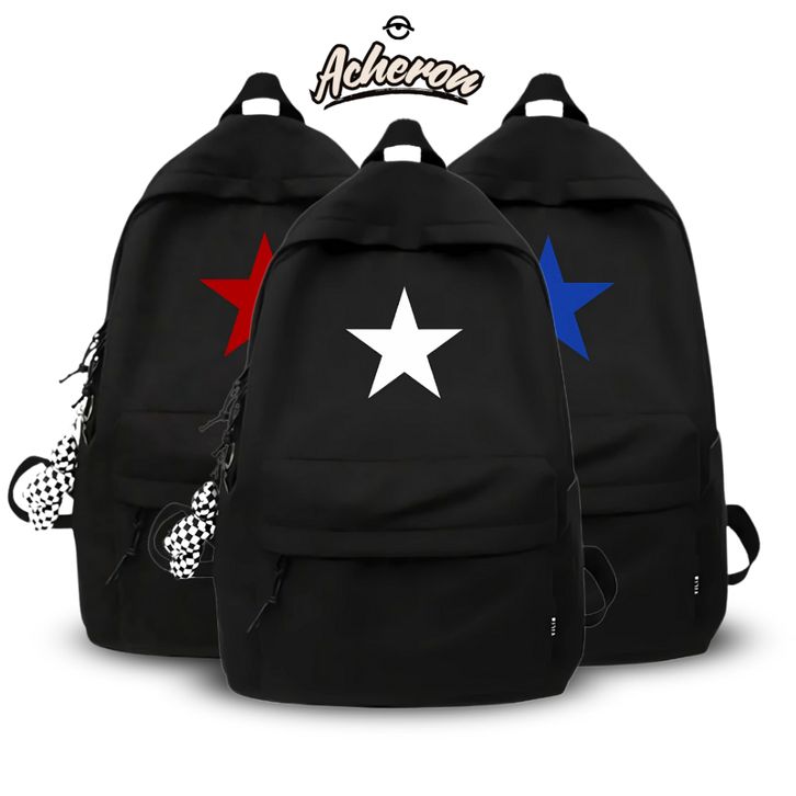 Acheron Tas Ransel Anak Sekolah SD SMP SMA Motif Bintang Putih Laki Laki Perempuan Unisex Tas Punggung Backpack Polos