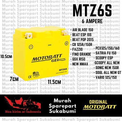 AKI MOTOR MOTOBATT MTZ6S SATRIA FU VARIO 125 AEROX BEAT ESP CB 150R NMAX NEW PCX 125