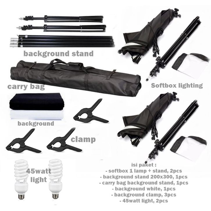 Paket lighting foto studio set backgroundPaket lighting foto studio set stand softbox lampu studio vlog youtube make up