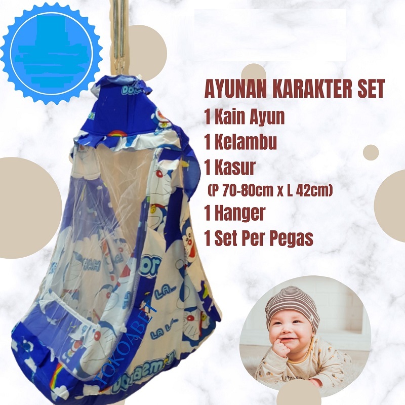 Ayunan Bayi Karakter 5in1 Kain Ayunan Kelambu Lengkap Alas Kasur