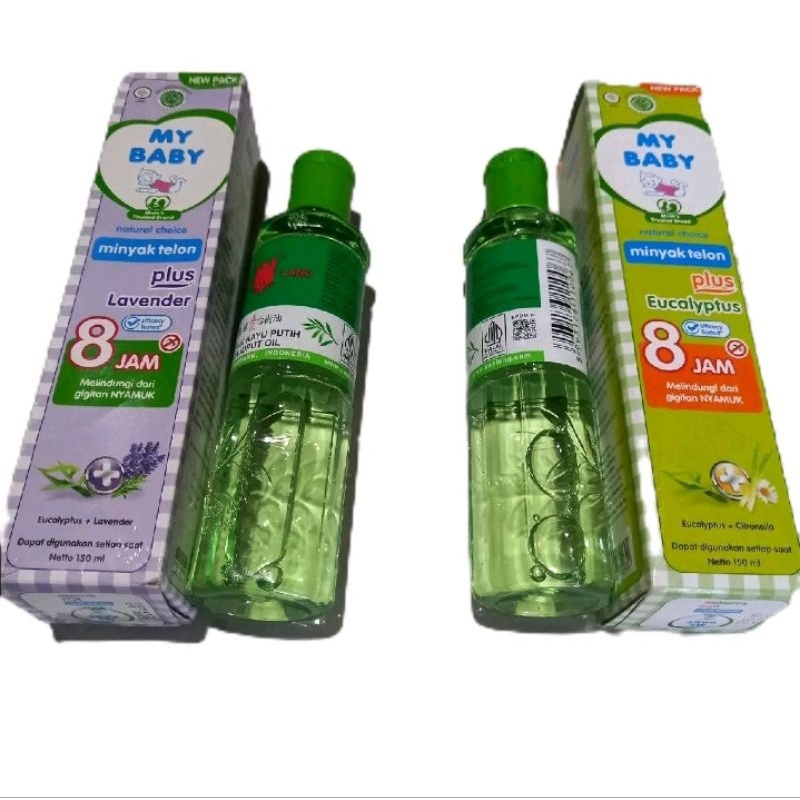 Minyak telon My Baby plus 150ml/90ml BUNDLING Cap Lang kayu putih 120ml/60ml/30ml