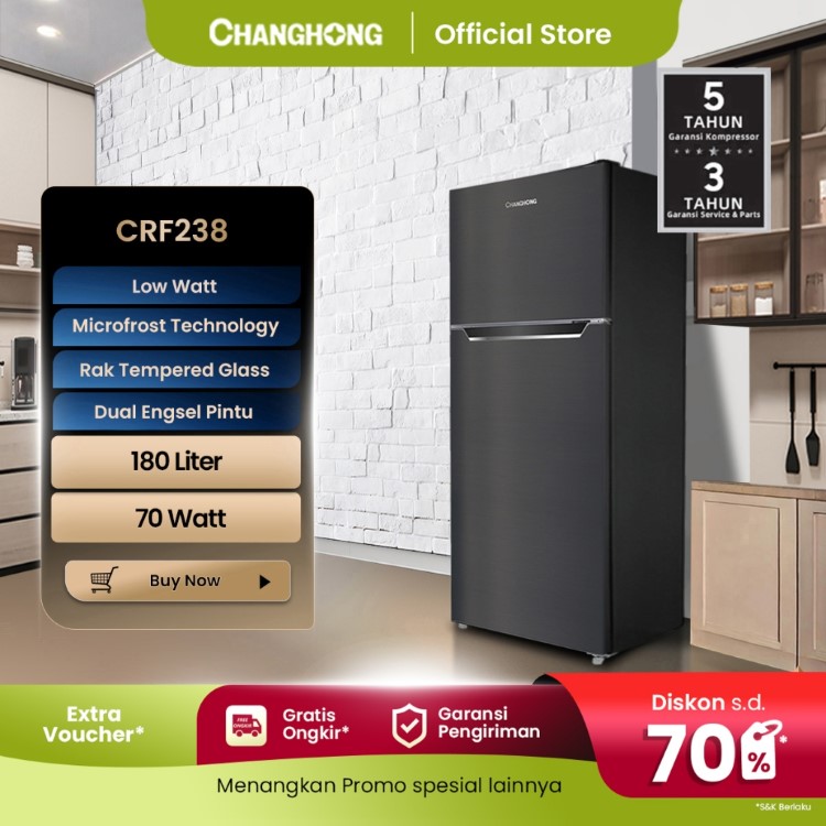 Kulkas 2 Pintu Changhong Refrigerator Lemari Es Kapasitas 122 Liter FTM155DB Black Semi Auto Defrost Kulkas Minimalis