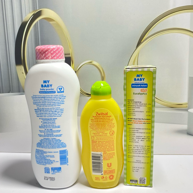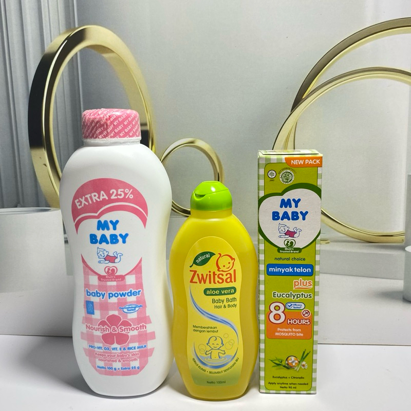 Paket 3in1 My Baby ( minyak telon 90ml + sabun zwitsal 100ml + bedak 100ml Random) Original BPOM
