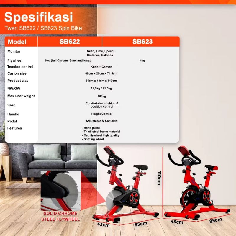 Spinning bike SB623 Spin Bike sepeda statis sepeda kardio alat fitness twen original