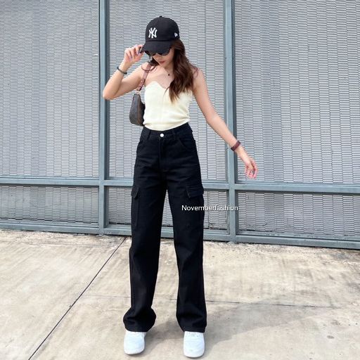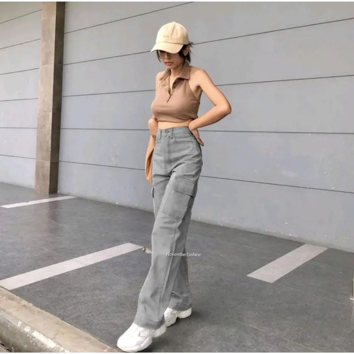 Celana Cargo QYUJINS -9rEY HW LOOSE CARGO JEANS / ABU ABU CARGO JEANS / CELANA BIGSIZE HW LOOSE JEANS WANITA