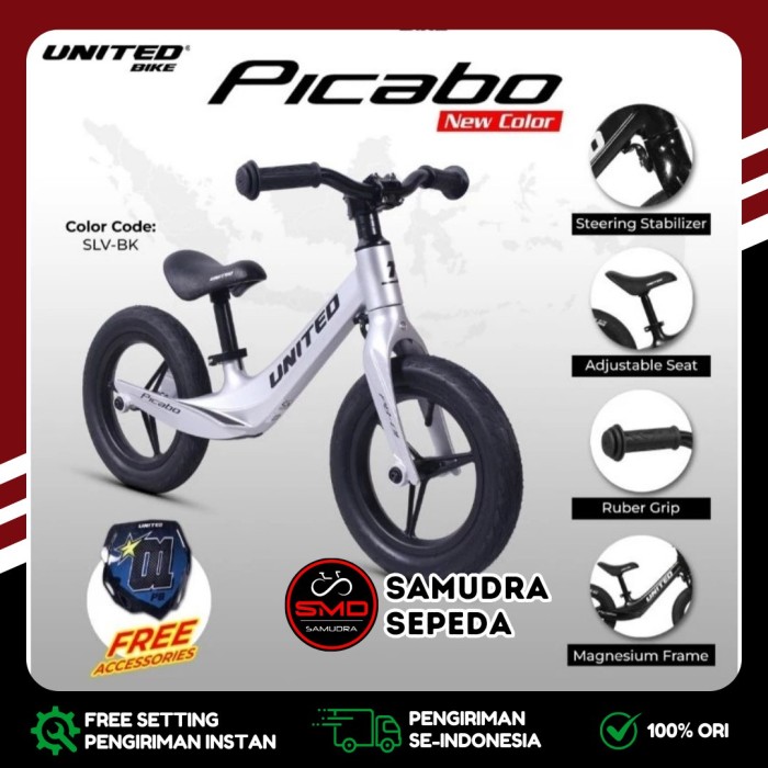 Sepeda Anak Balance Push Bike United Picabo Magnesium Ringan Murah Bdg - Black