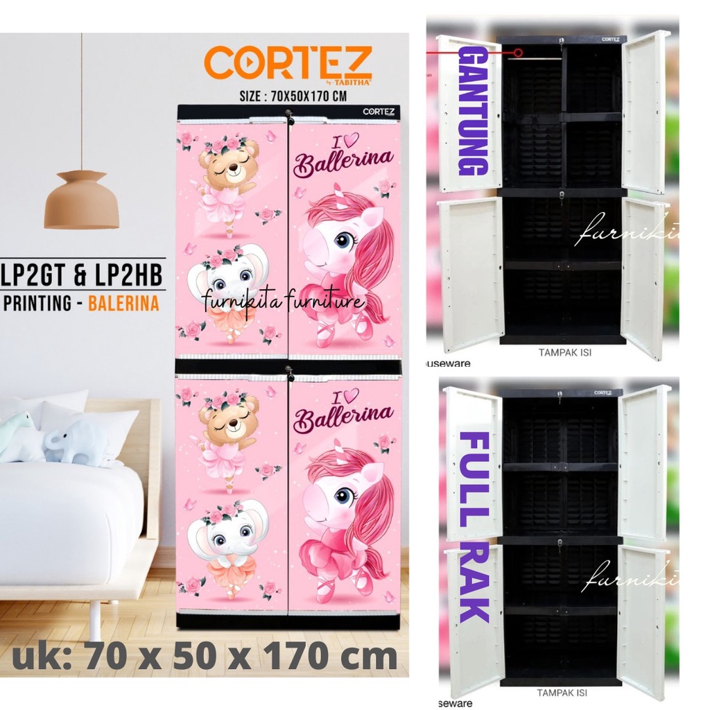 LEMARI PLASTIK TABITHA CORTEZ GANTUNGAN KUNCI PRINTING BALERINA MINIMALIS ANTI RAYAP BEST SELLER
