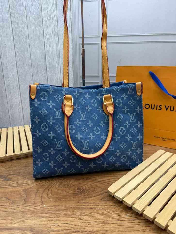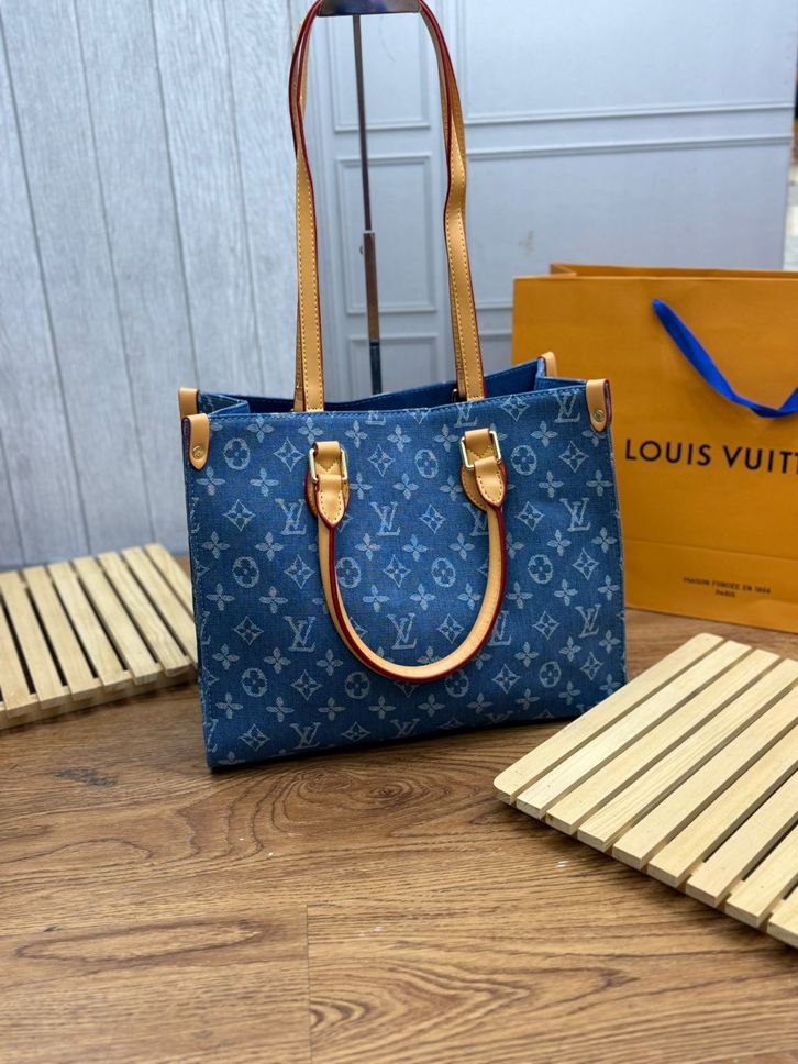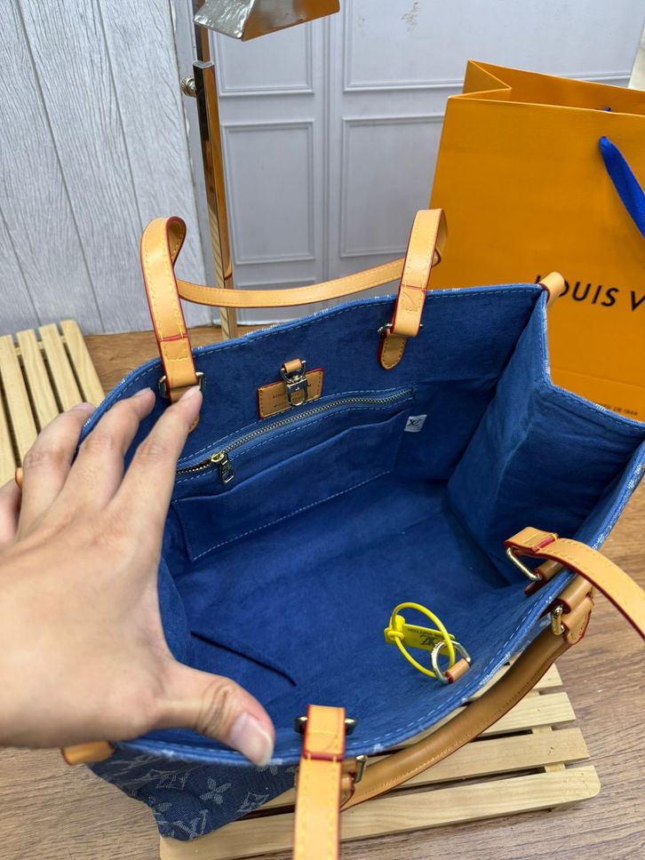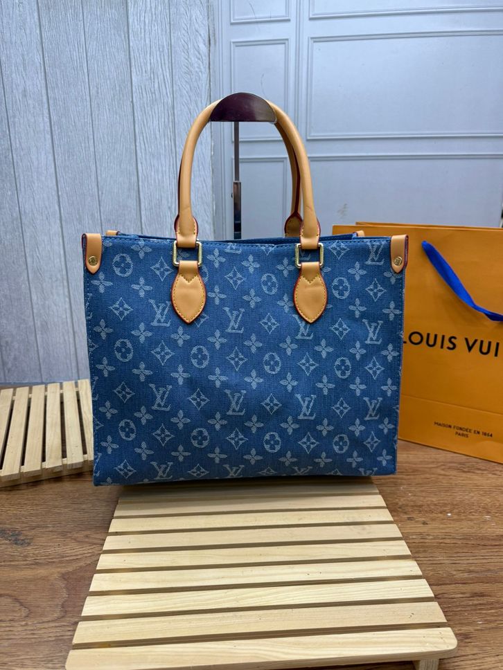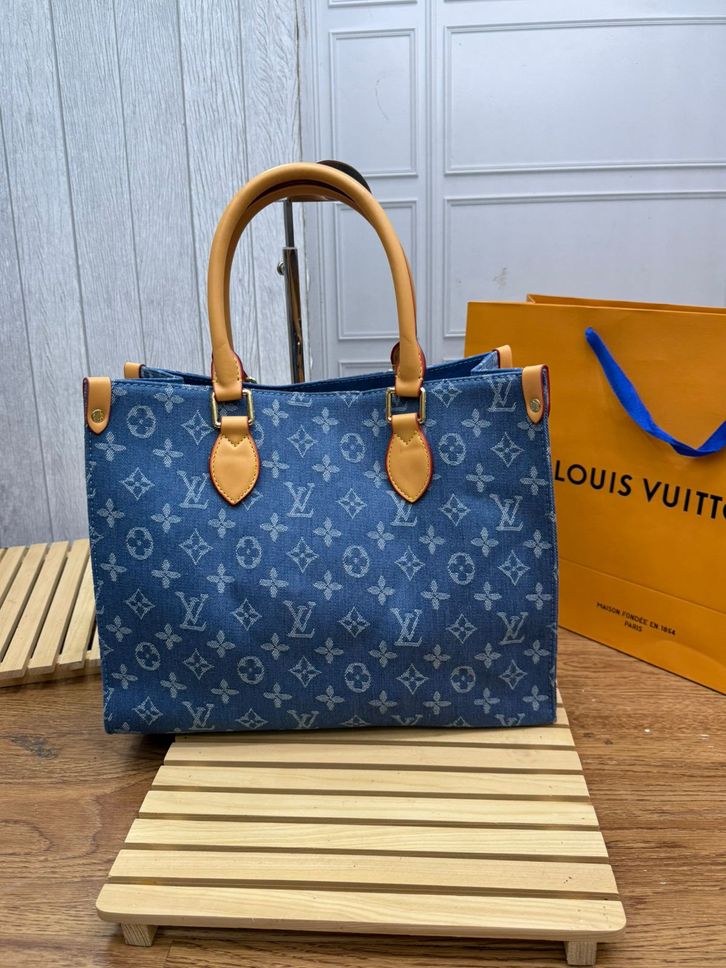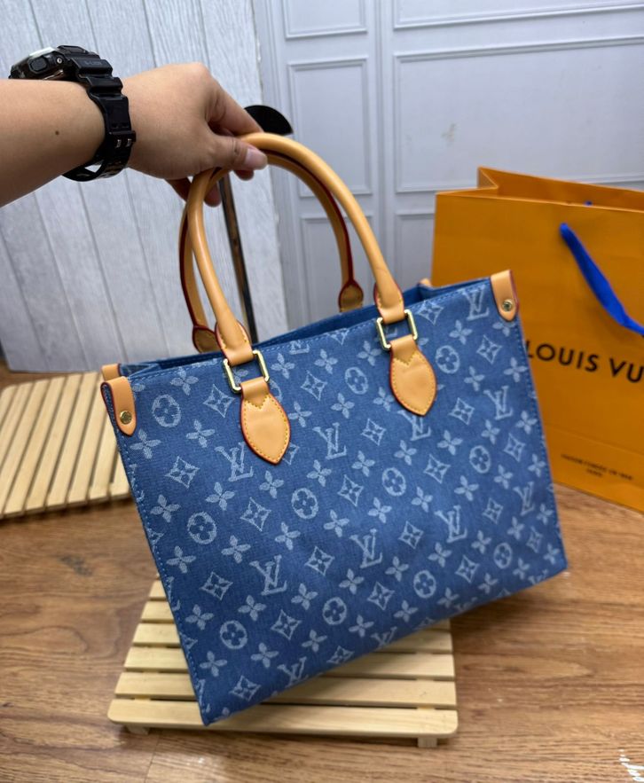 TAS LV ON THE GO DENIM MM PREMIUM/TAS WANITA ELPONG OTG 34CM/HANDBAG/SHOULDERBAG TAS BRANDED TERBARU