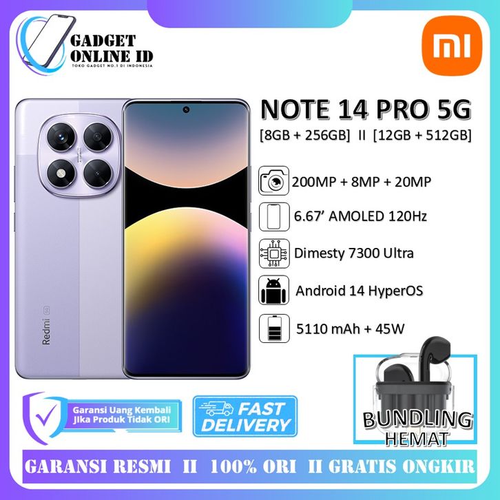 Xiaomi Redmi Note 14 Pro 5G [8/256GB] [12/512GB] Garansi Resmi Indonesia New BNIB