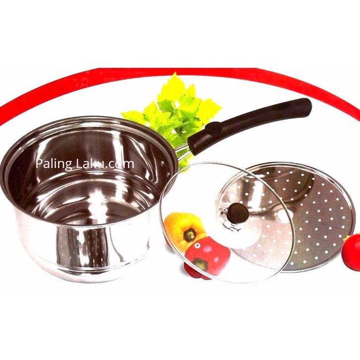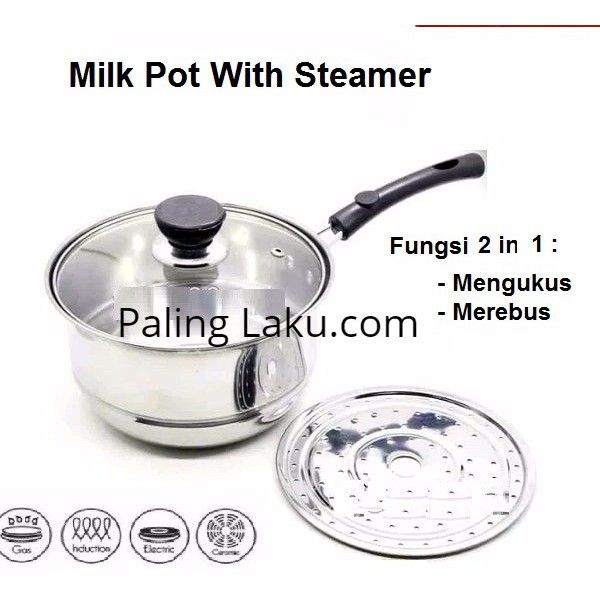 MILK POT Panci Susu 20 CM With SteamerPanci Stainless Dengan Tutup Kaca Berkualitas Panci Serbaguna TERLARIS BEST SELLER