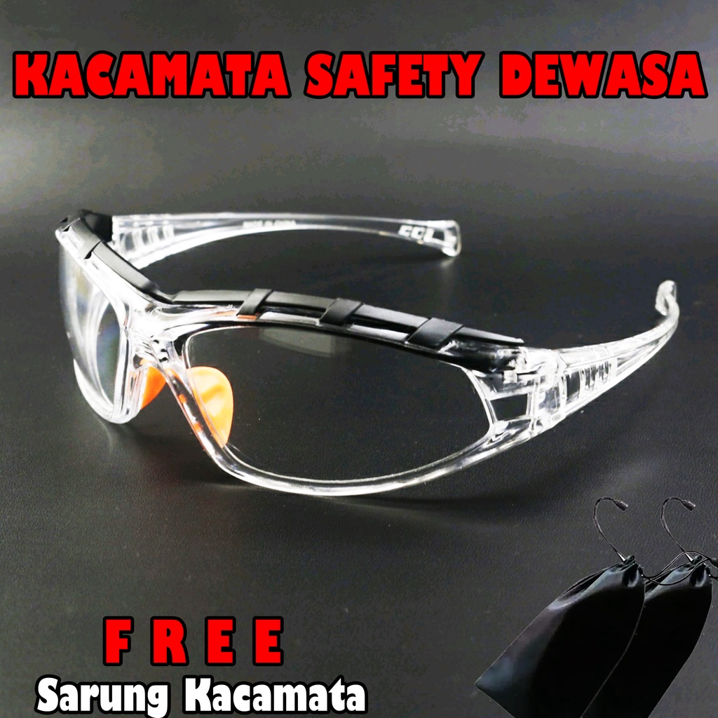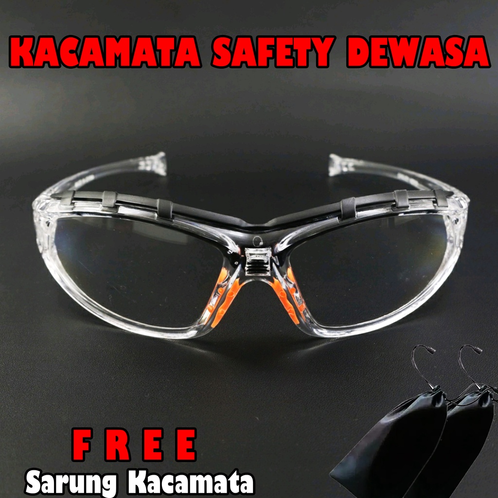Kacamata Safety Dewasa Kacamata Safety bening Transparant Safety APD Kacamata Pelindung Debu GRATIS Sarung Kacamata