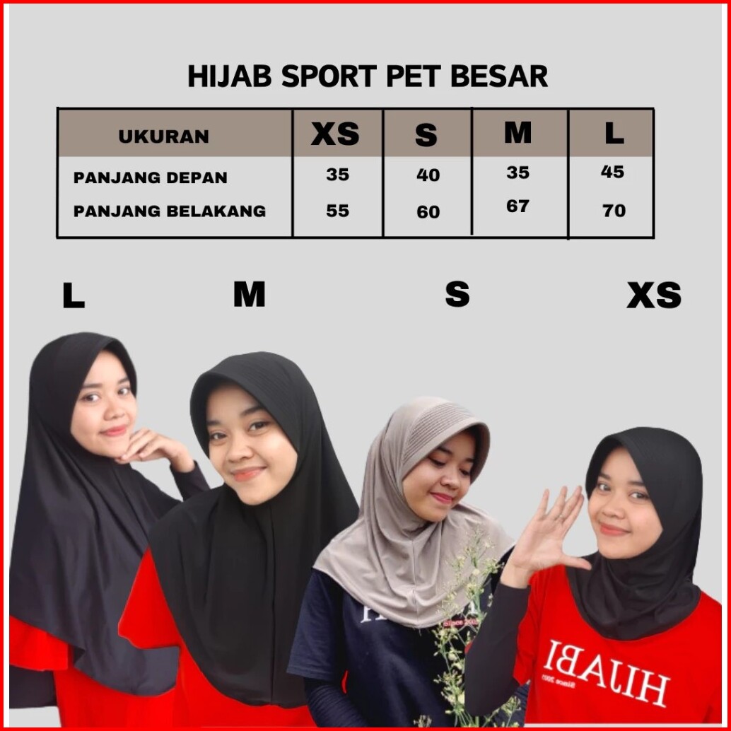 Hijab Sport Linear Pet Besar Size Xs S M L Kerudung Sport Pet Tebal Hijab Olahraga Kerudung Sport Premium