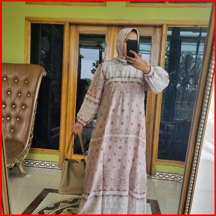 Dress Humaira Gamis Set Hijab Rayon Motif Premium Muslim Panjang
