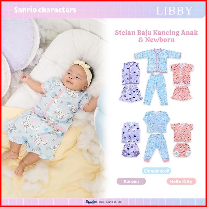 Libby Sanrio Setelan Piyama Baju Kancing Newborn Bayi Anak Kecil Perempuan Kuromi Cinnamoroll Hello Kitty 1 Stel