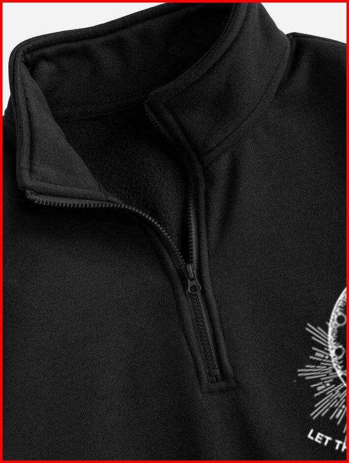 Half Zipper Hoodie Crescent Moon Graphic Terbaru Flecee M-xxl Fleece Pria Sweater Distro Hitam Nyaman Keren Lembut Unise